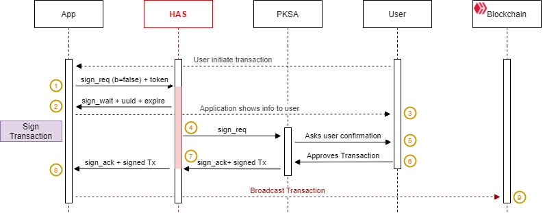 Note: The default maximum delay to approve a transaction request is 60 seconds. The HAS will discard any pending request with a longer timeout.